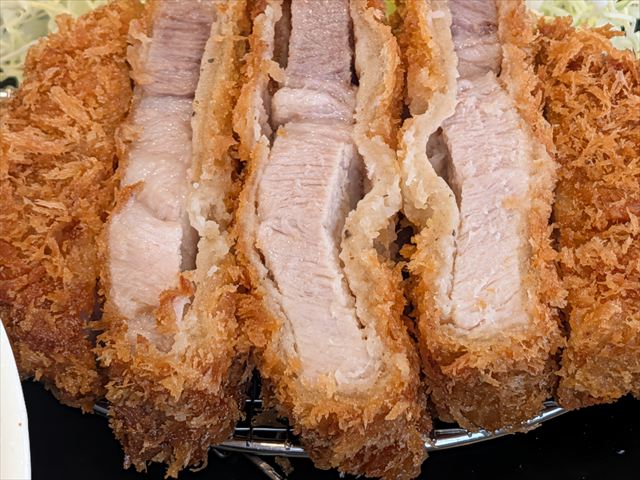 しばらく待っていると、番号が表示されたので取りに行ってみた。このビジュアル。一目で厚切りとわかる。それを最大限に生かす盛り付け方もGood。